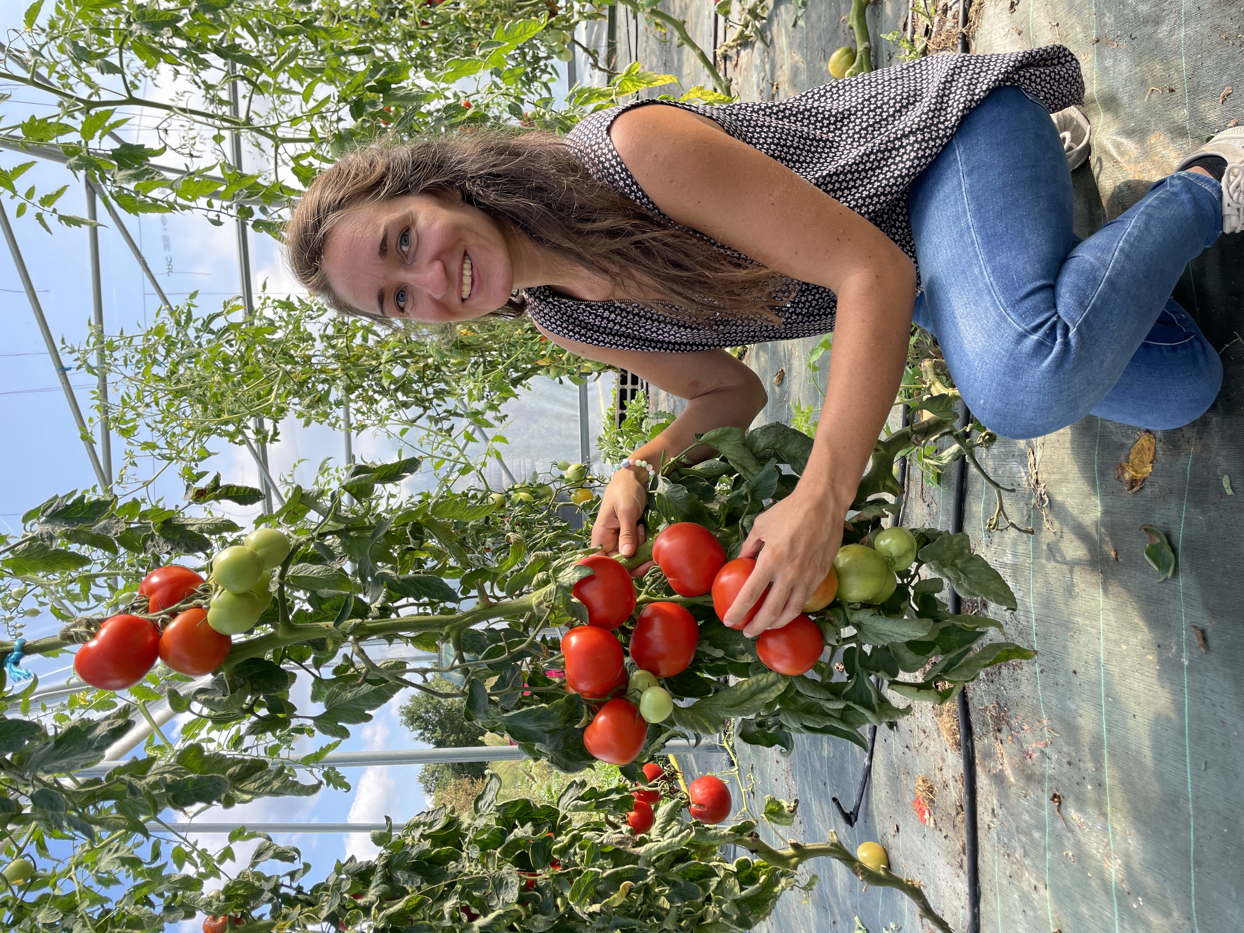En charge de la commercialisation des légumes, elle s'occupe avec bienveillance des commandes clients et de faire connaître nos jardins dans un réseau local.